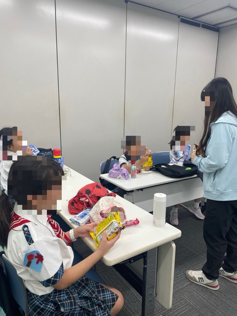 前半は、防災食についてのクイズをして、そのあとみんなで防災食を買いにスーパーに出発!みんな各々に食べてみたいものを、防災コーナーより選んで買い物をしました。