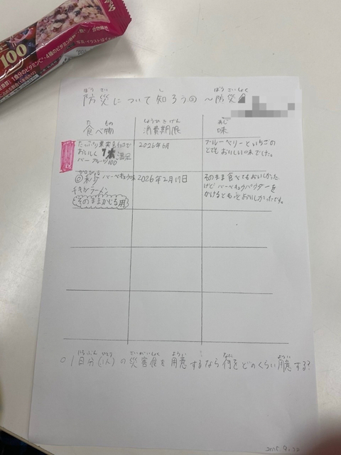 その後、戻ってからみんなで防災食(保存食)を試食。みんな、自分で選んだものだから、きっと美味しく感じたことでしょう。